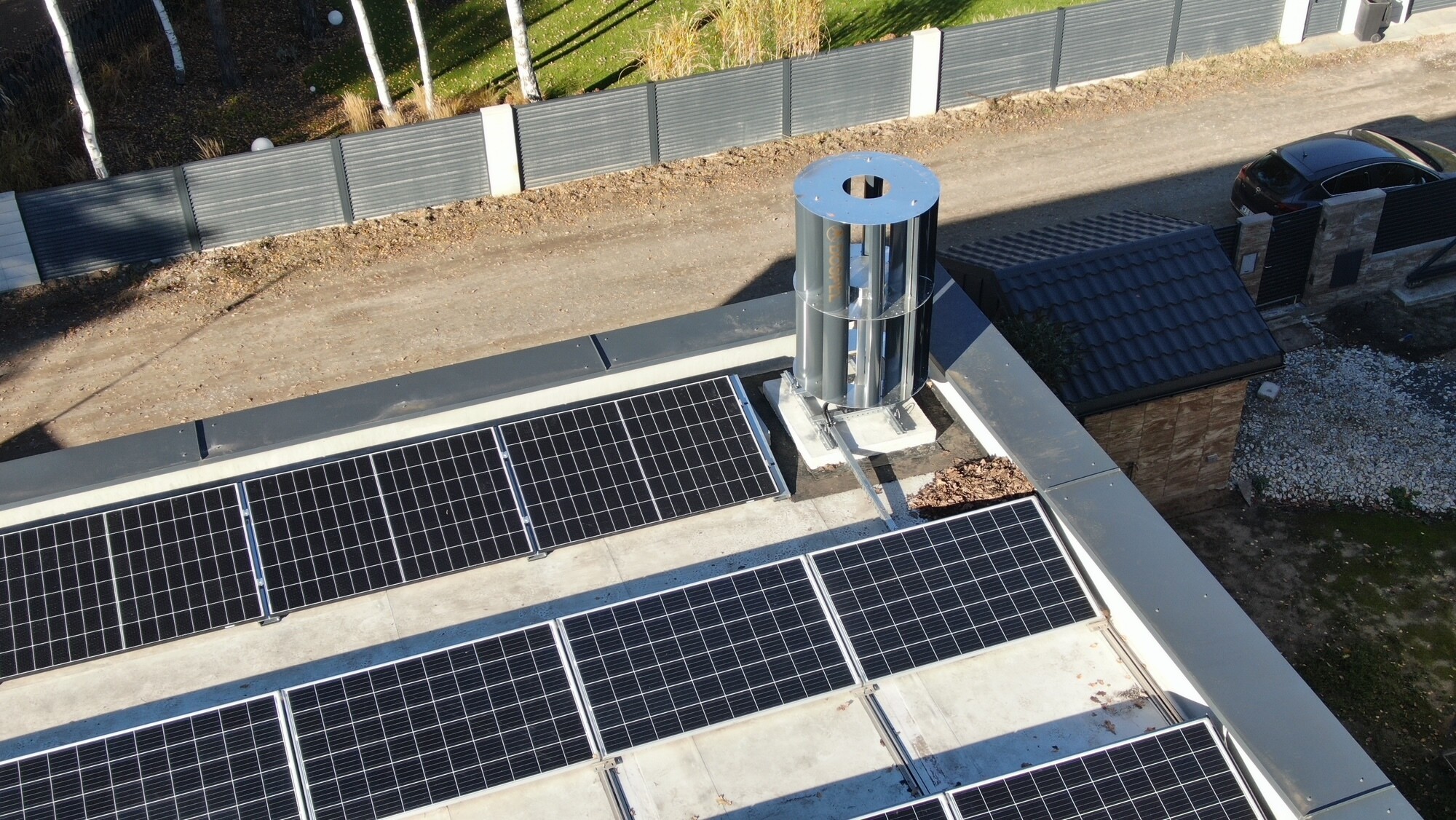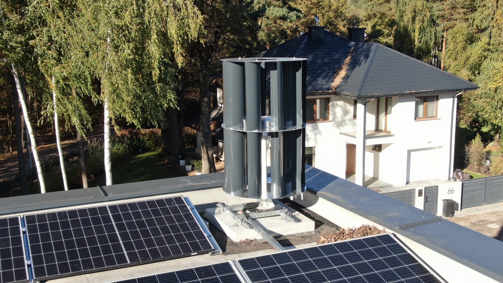 To doskonały przykład połączenia fotowoltaiki, magazynu energii i małej turbiny wiatrowej w jednym, zintegrowanym systemie.